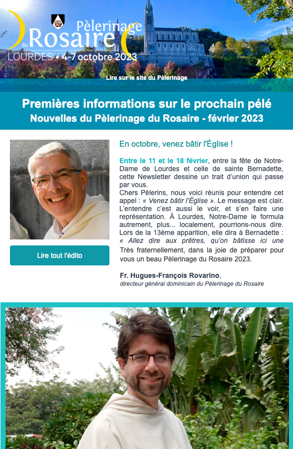NEWSLETTER N°1 – 2023 newsletterPar Sophie Delay14 février 2023Nouvelles du Pèlerinage du Rosaire – février 2023