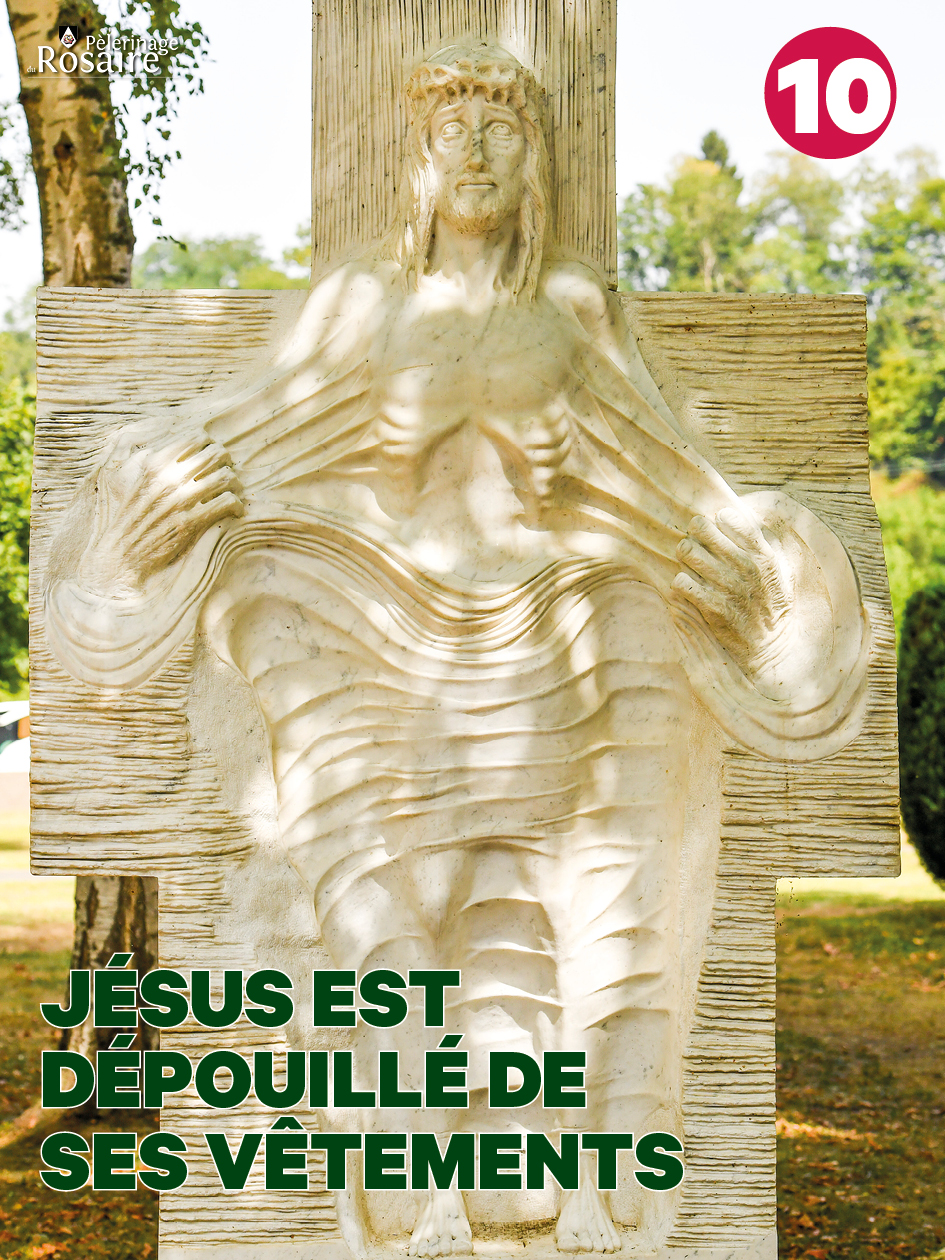 Après les humiliations, la flagellation, le couronnement d’épines, le portement de la croix sur ses épaules et son dos douloureux à l’extrême, voici que les humiliations continuent.