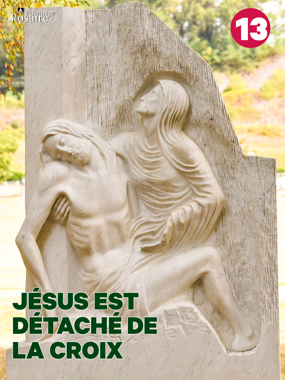 Tel un enfant qui dort dans l’innocence de ses rêves, Jésus est déposé dans les bras de sa mère. Marie le reçoit dans son infinie tendresse. De la crèche de Bethléem au pied de la croix, elle n’est qu’offrande d’amour à Dieu le Père, aux hommes ses frères.