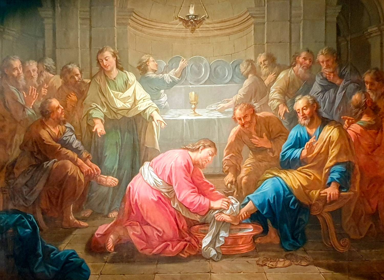 Un geste, une posture. La posture de l’esclave. Sans rien dire, « Jésus, sachant que le Père a tout remis entre ses mains, qu’il est sorti de Dieu et qu’il s’en va vers Dieu, se lève de table, dépose son vêtement, et prend un linge qu’il se noue à la ceinture ; puis il verse de l’eau dans un bassin. Alors il se mit à laver les pieds des disciples et à les essuyer avec le linge qu’il avait à la ceinture ».