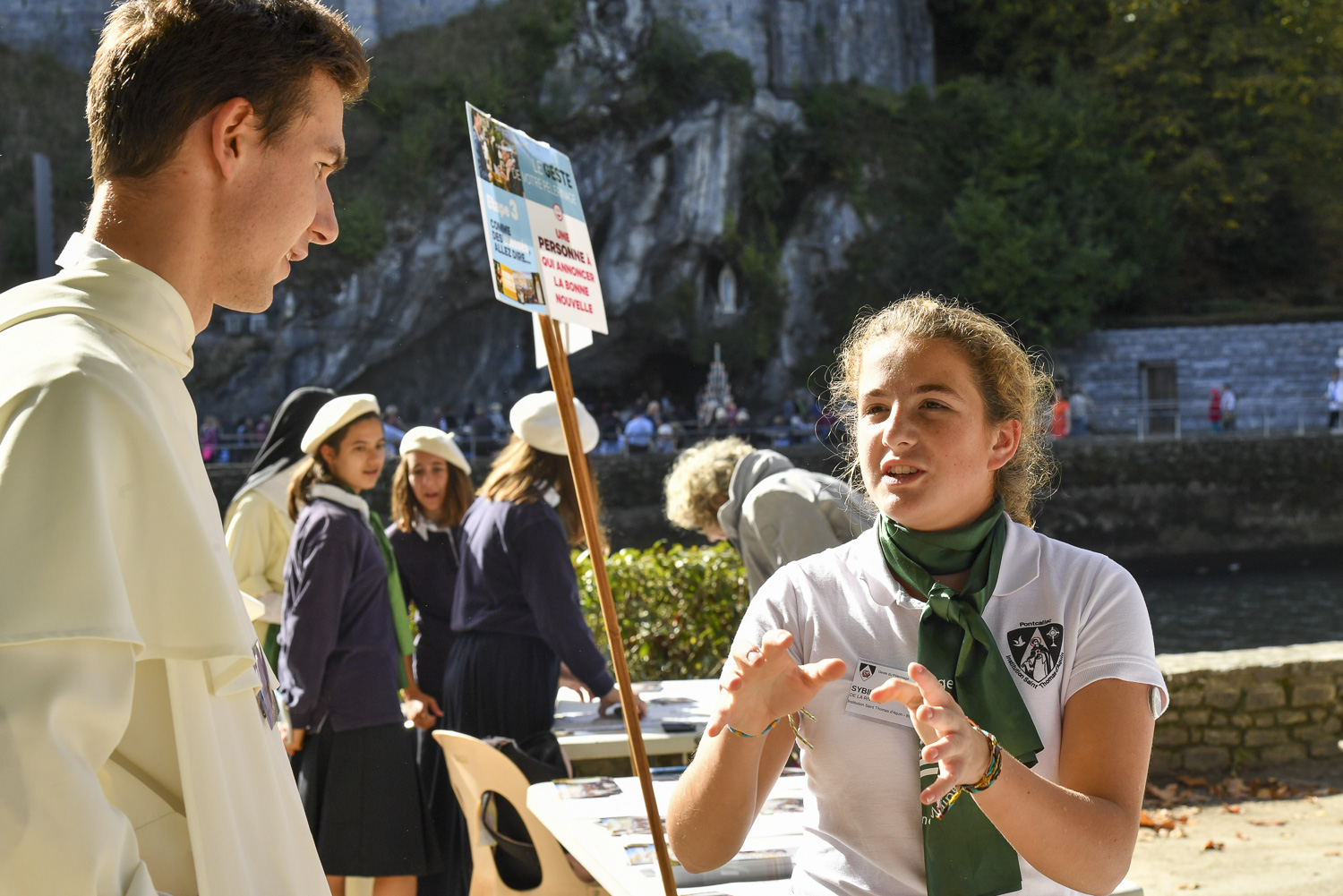 Chaque année, il est proposé à tous les pèlerins du Pèlerinage du Rosaire, un parcours catéchétique autour d’un ou de plusieurs gestes proposés, accompagnés par des jeunes, des hôtesses, des hospitaliers, sur les pas de Bernadette et de la Vierge Marie.