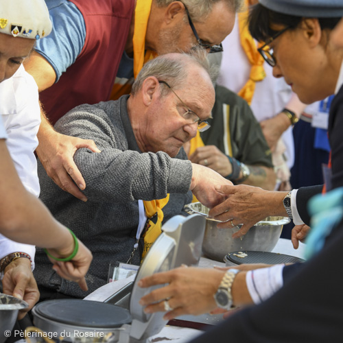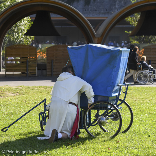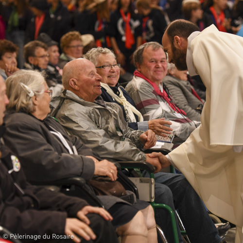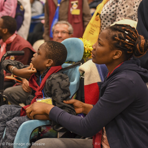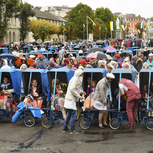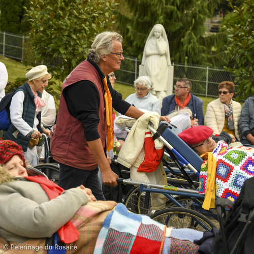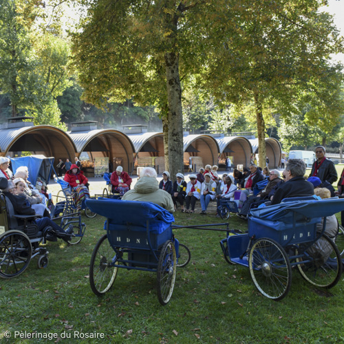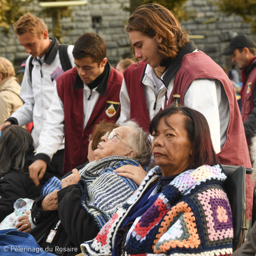 Le Pèlerinage du Rosaire accueille des « pèlerins en accueil », soit parce qu’ils ne peuvent assurer leur autonomie pour les gestes de la vie courante, soit qu’ils aient besoin d’une assistance médicale particulière ou de soins spécifiques, soit qu’ils soient en situation de handicap.