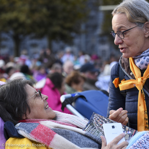 De nombreux fauteuils roulants sont mis à leur disposition et près de 600 lycéens se mettent à leur service, tout au long du Pèlerinage. Si vous êtes autonome, mais craignez de ne pouvoir accomplir votre pèlerinage sur vos deux jambes, vous pouvez envisager d’avoir recours au service de ces lycéens et d’entrer ainsi en compagnonnage avec un ou deux d’entre eux (inscription indispensable avant le Pèlerinage).