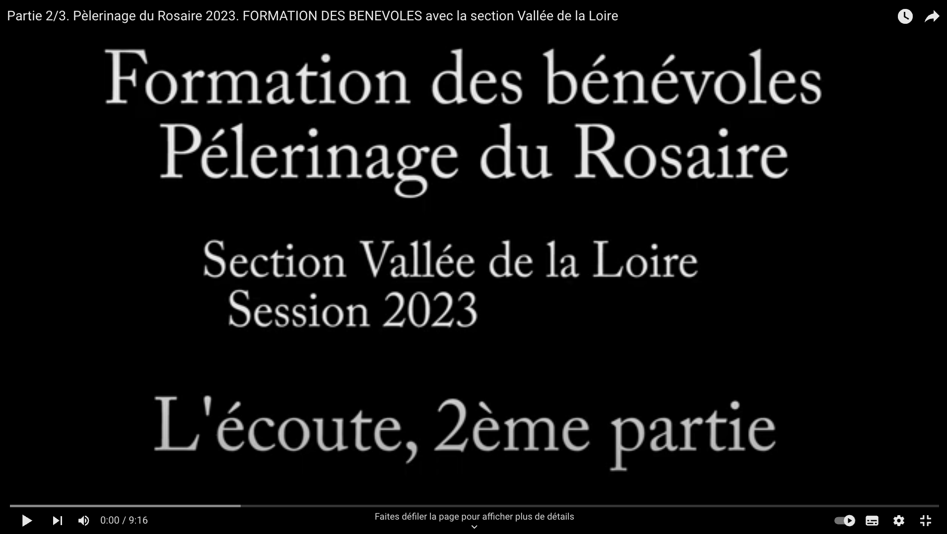 Chaque année, l’association du pèlerinage du Rosaire Vallée de la Loire propose à ses adhérentes/adhérents bénévoles ou futures/futurs bénévoles une formation d’une 1/2 journée l’avant-dernier samedi du mois de septembre. Cliquer sur les vidéos ci-dessus pour découvrir les 3 dernières sessions.